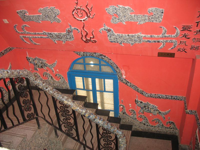 архитектуры. Четыре китайских дракона из фарфоровой мозаики обвили снаружи дом.